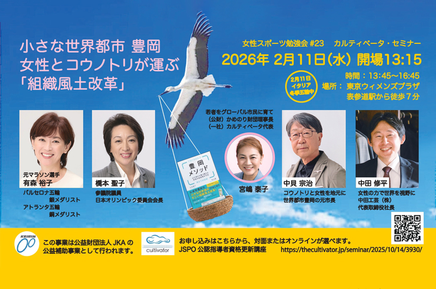 「小さな世界都市豊岡 女性とコウノトリが運ぶ 組織風土改革」というテーマで、有森裕子さん、橋本聖子さんと共に話をします。