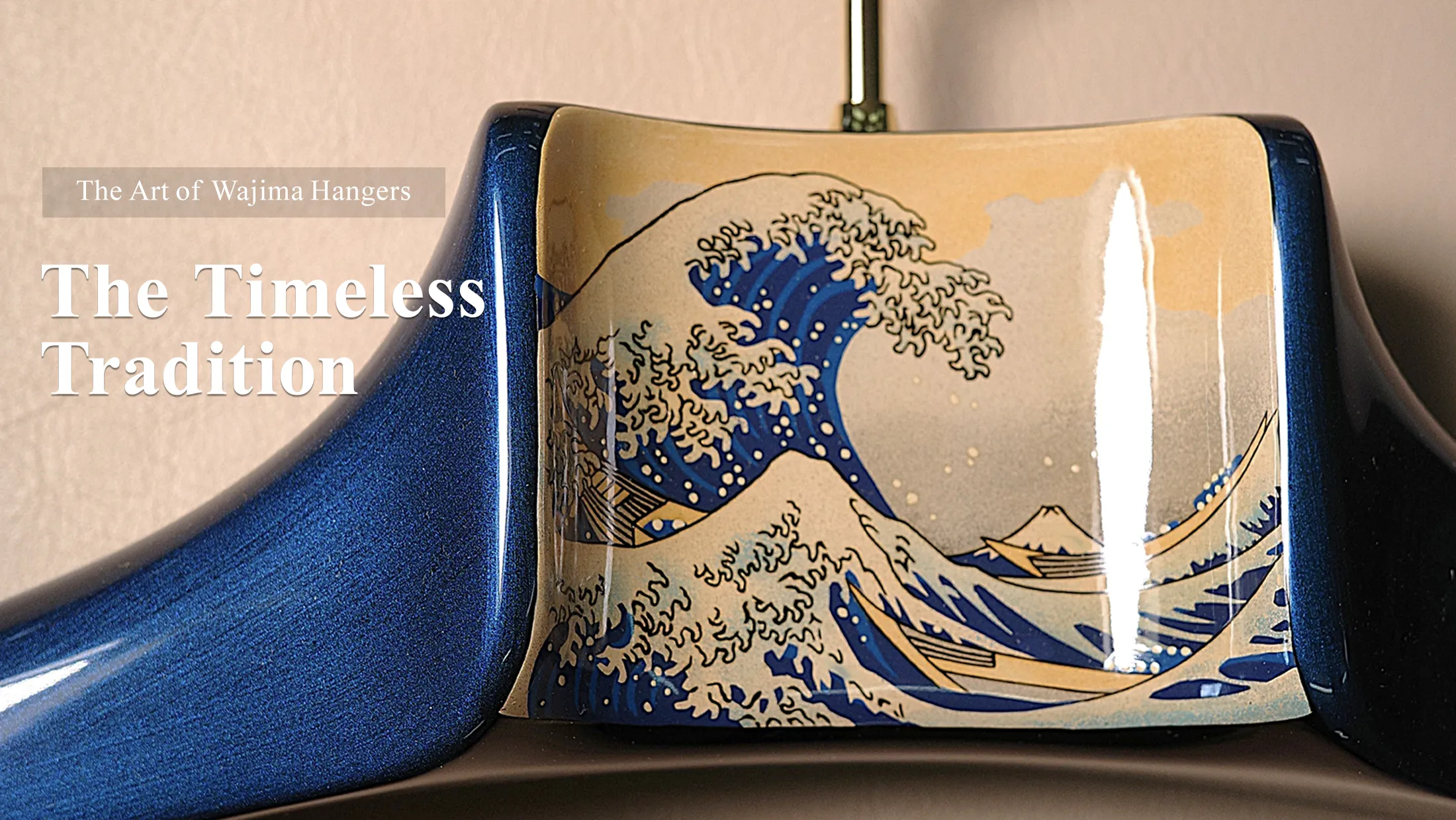 In addition to the traditional lacquer colors of black and vermilion, Wajima lacquer hangers also feature a shiny, bright blue lacquer known as 'pearl lacquer.' This choice reflects Mr. Okagaki's desire to encourage people to incorporate lacquerware into their daily lives.