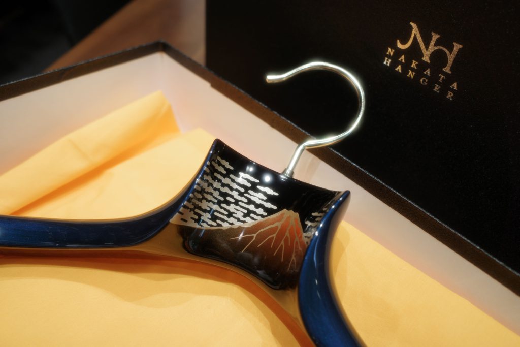 One example is our Wajima lacquered hanger, designed for everyday clothing yet adorned with a maki-e depiction of “Red Fuji” inspired by Katsushika Hokusai—blending function with cultural artistry.
