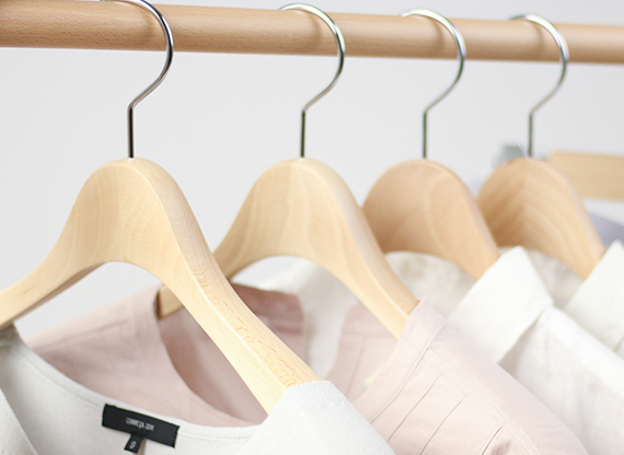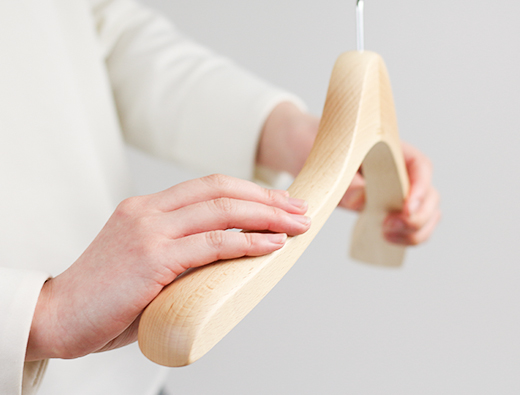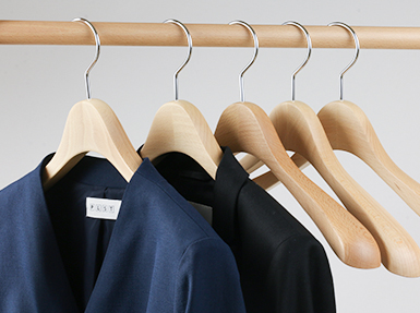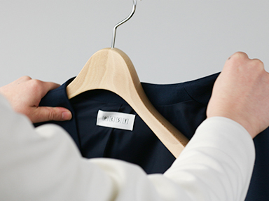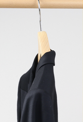 立体裁断で作られた洋服は、人が着用しているときと同じようにクローゼットに掛けることが一番の保管方法です。なめらかな手触りはお客様と大切なお洋服を考えてのこと。掛け外しもストレスフリーに行えます。