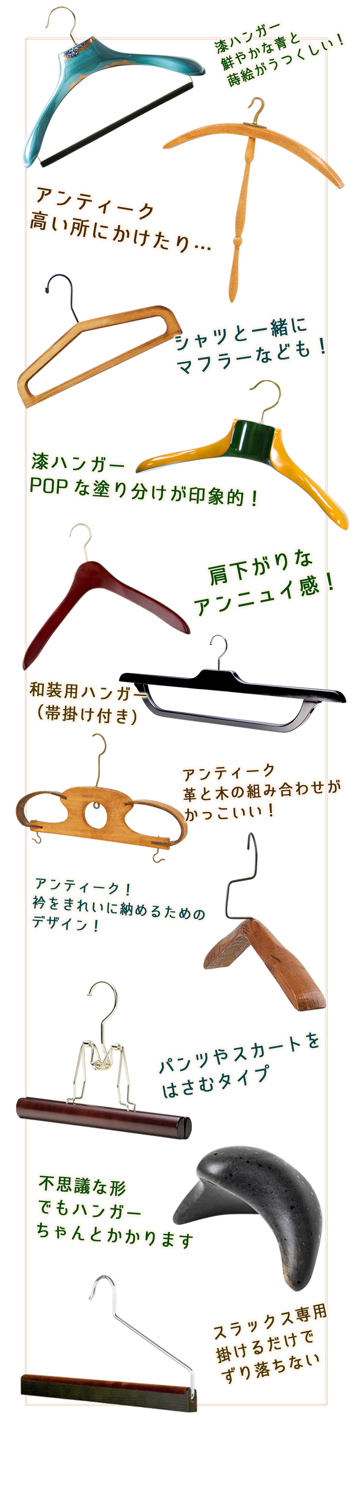 ハンガーは昔から、人々のファッションとライフスタイルに関わってきたプロダクトです。これから先も、大切なふく(服と福)をかけるモノとして生活の中に存在し続けることでしょう。
