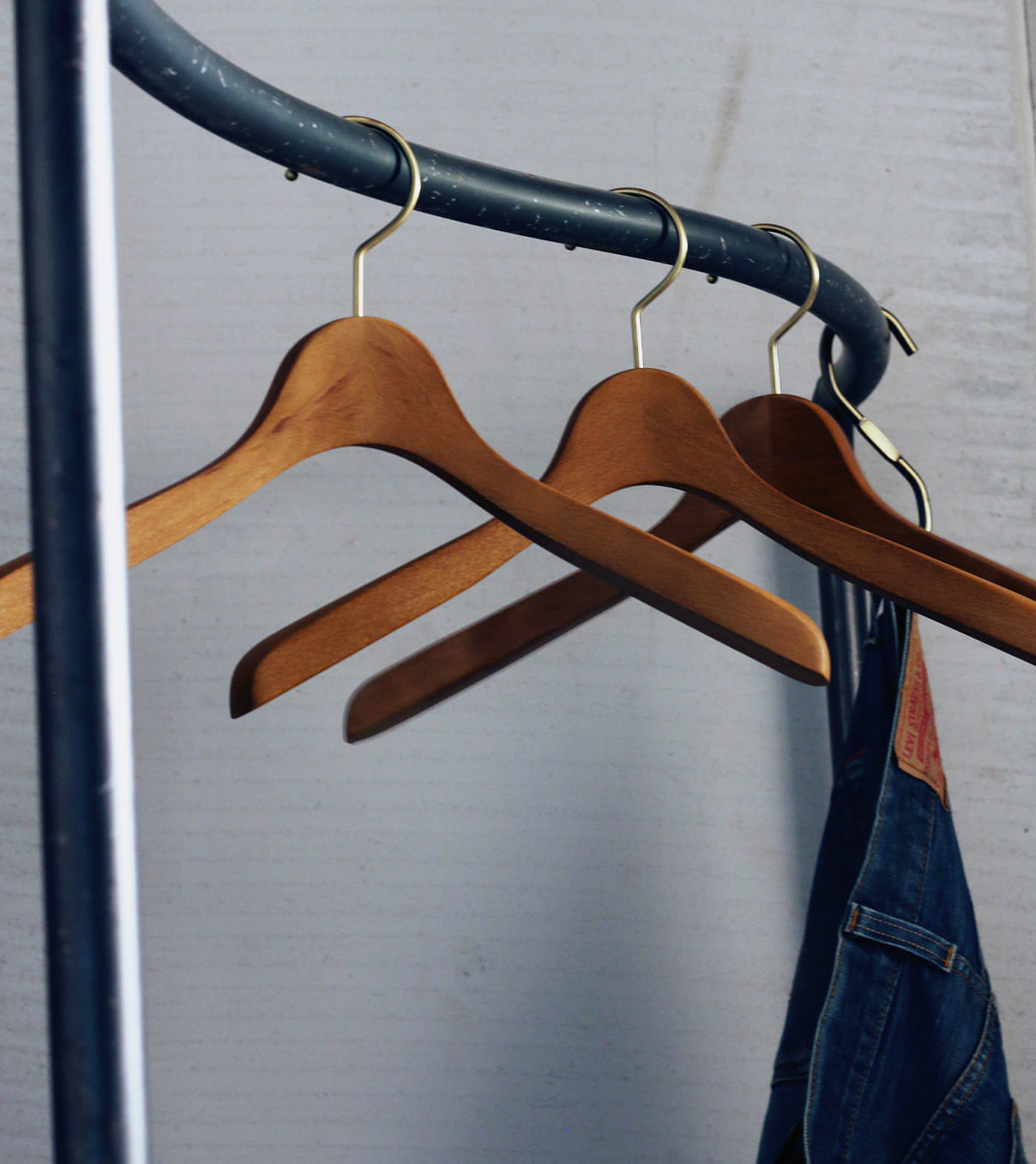 愛用しながら経年変化を楽しむお洋服、レザーやデニムジャケットを掛けて
