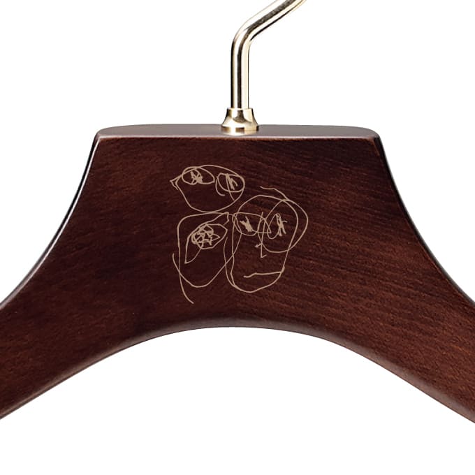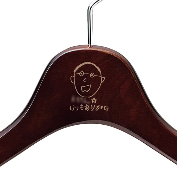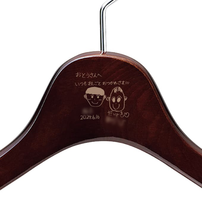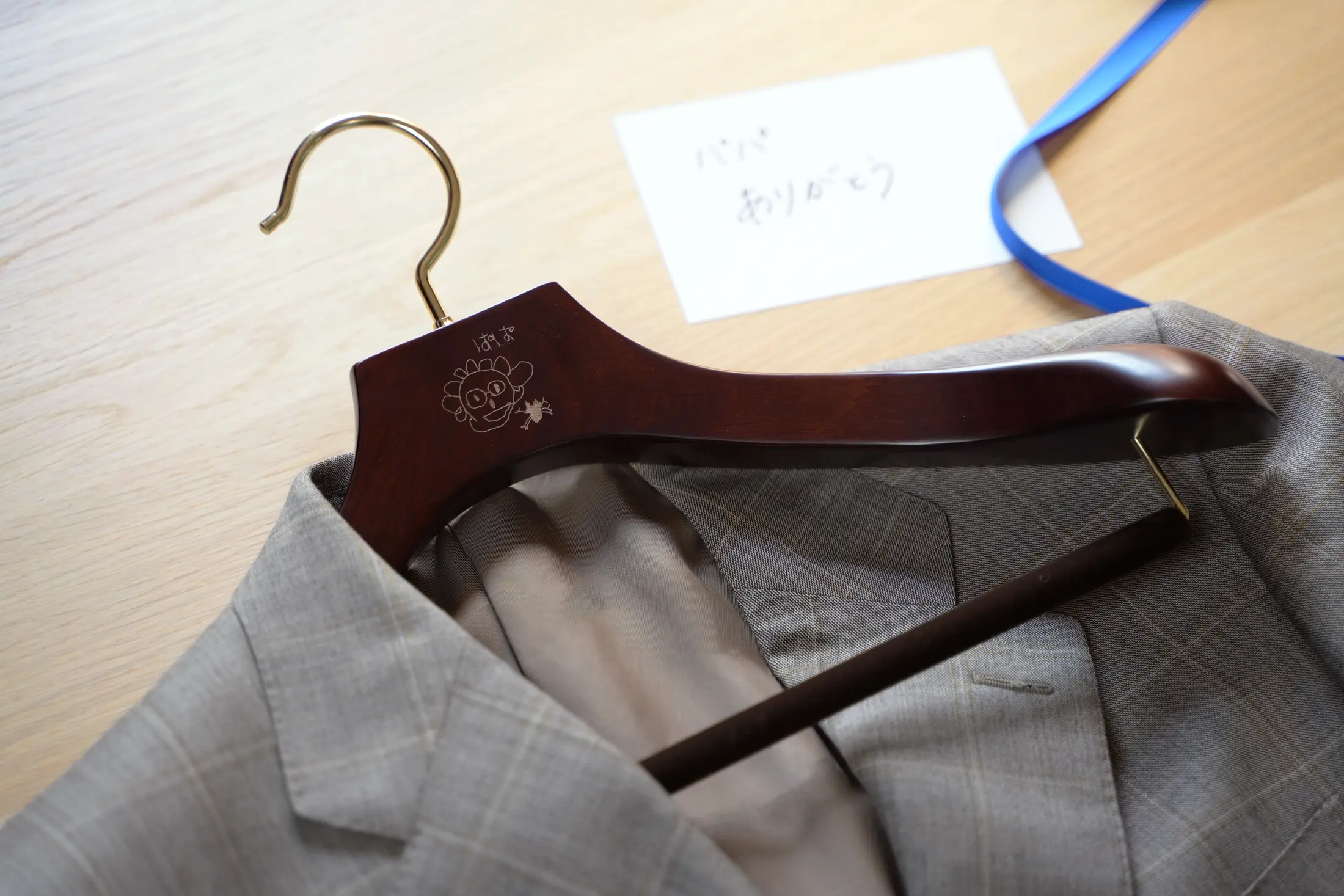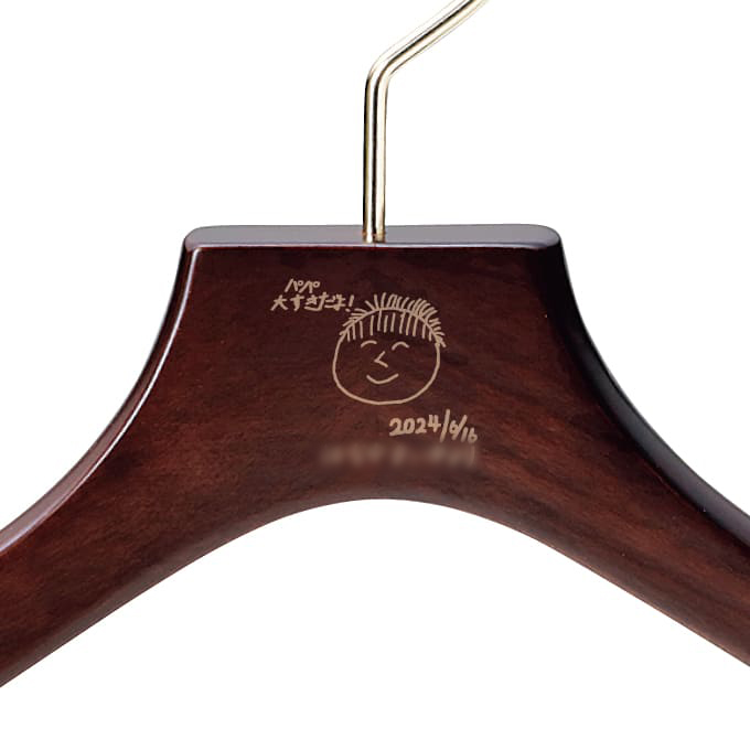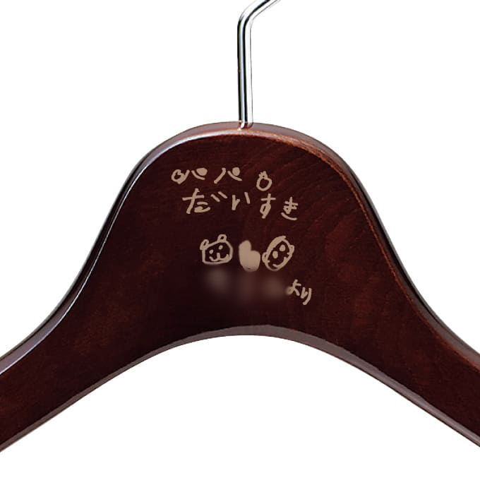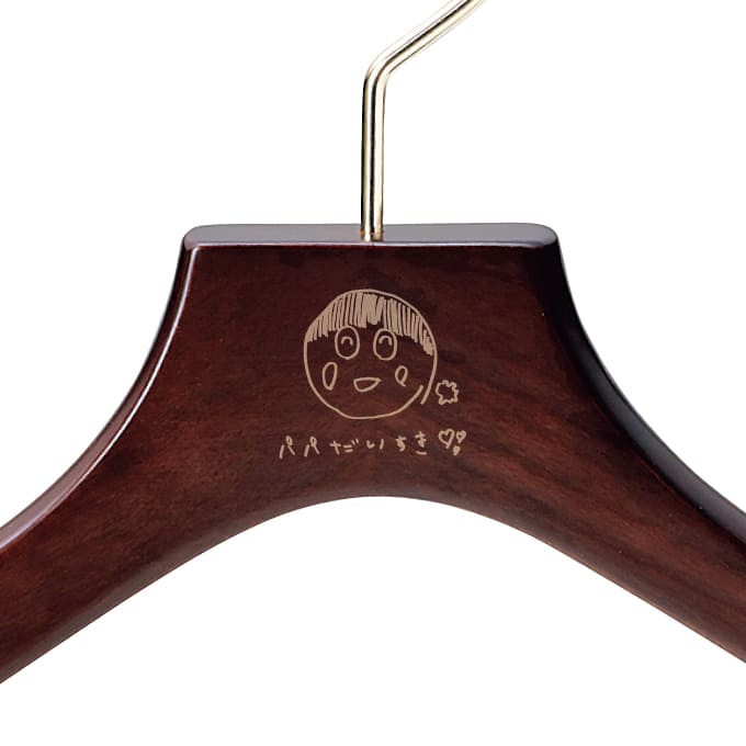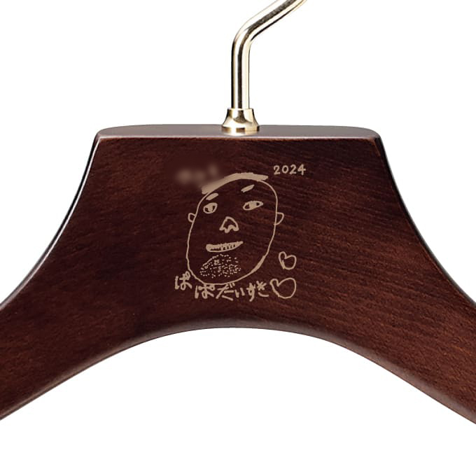 刻まれたイラストやメッセージが増えるたび、クローゼットは思い出あふれる空間に。上質なハンガーが日常にやさしい温もりを添え、家族の絆を見守ります。