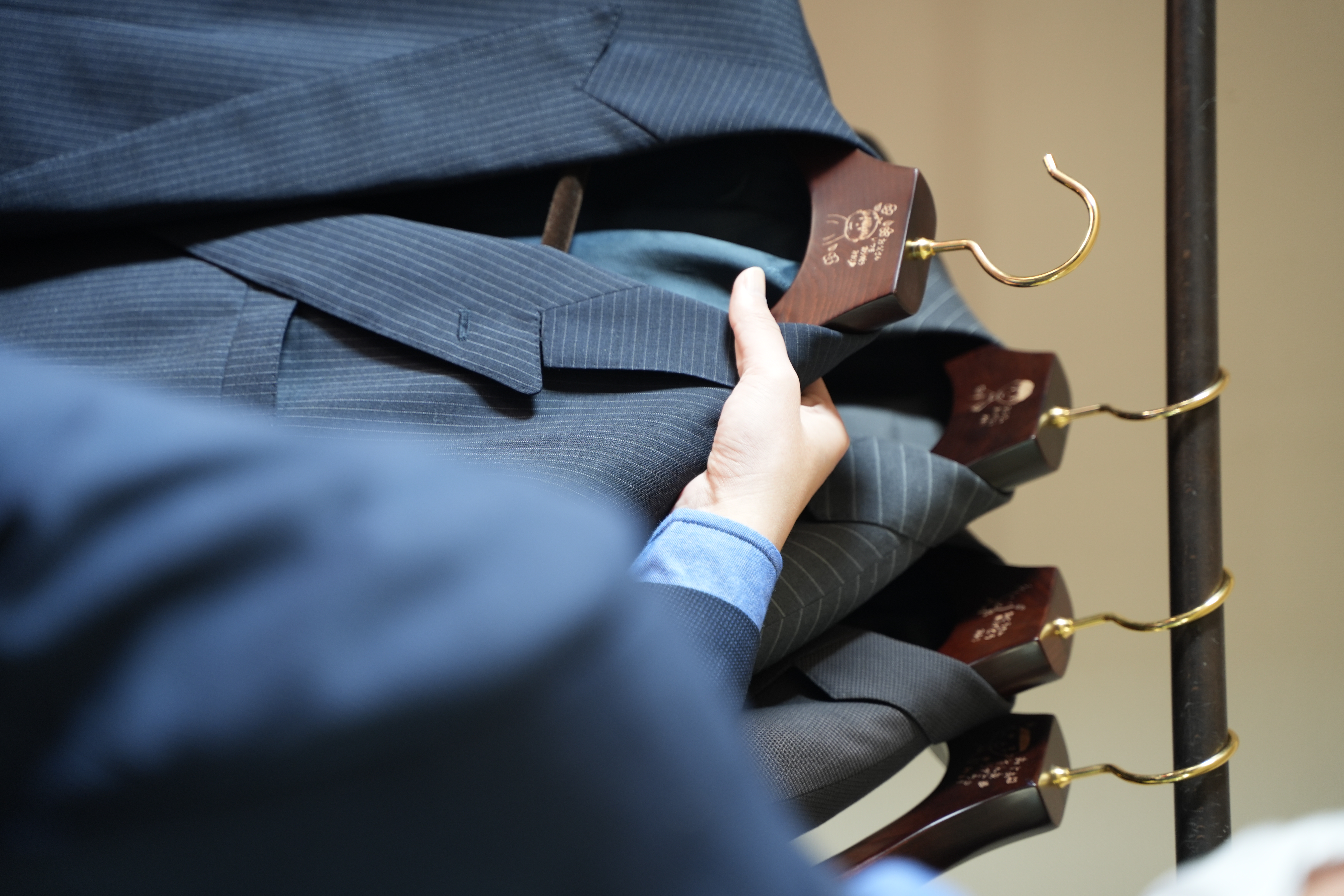 NAKATA HANGER には「ふく(服)をかける=福をかける」という願いが込められています。 また、ハンガーの「八」の形は末広がりを象徴し、幸せと繁栄を祈る縁起の良いデザインです。