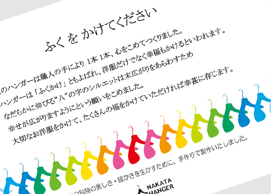 ハンガーには「ふくかけ」の思いが伝わるメッセージカードを同梱しています。(※裏面品質表示)