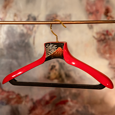The Wajima lacquer hanger is adorned with Mt. Fuji maki-e, inspired by the iconic works of Hokusai, the Japanese ukiyo-e (woodblock print) artist active in the early 19th century. Crafted with a design embedded into a hanger shaped like the number eight, which symbolizes Mount Fuji,—elevates this piece beyond a mere functional object and transforming it into a true work of art. The delicate technique of maki-e and bold design combine to give Wajima-nuri a special value and glamour to its owner.