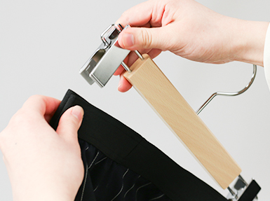 立体裁断で作られた洋服は、人が着用しているときと同じようにクローゼットに掛けることが一番の保管方法です。なめらかな手触りはお客様と大切なお洋服を考えてのこと。掛け外しもストレスフリーに行えます。