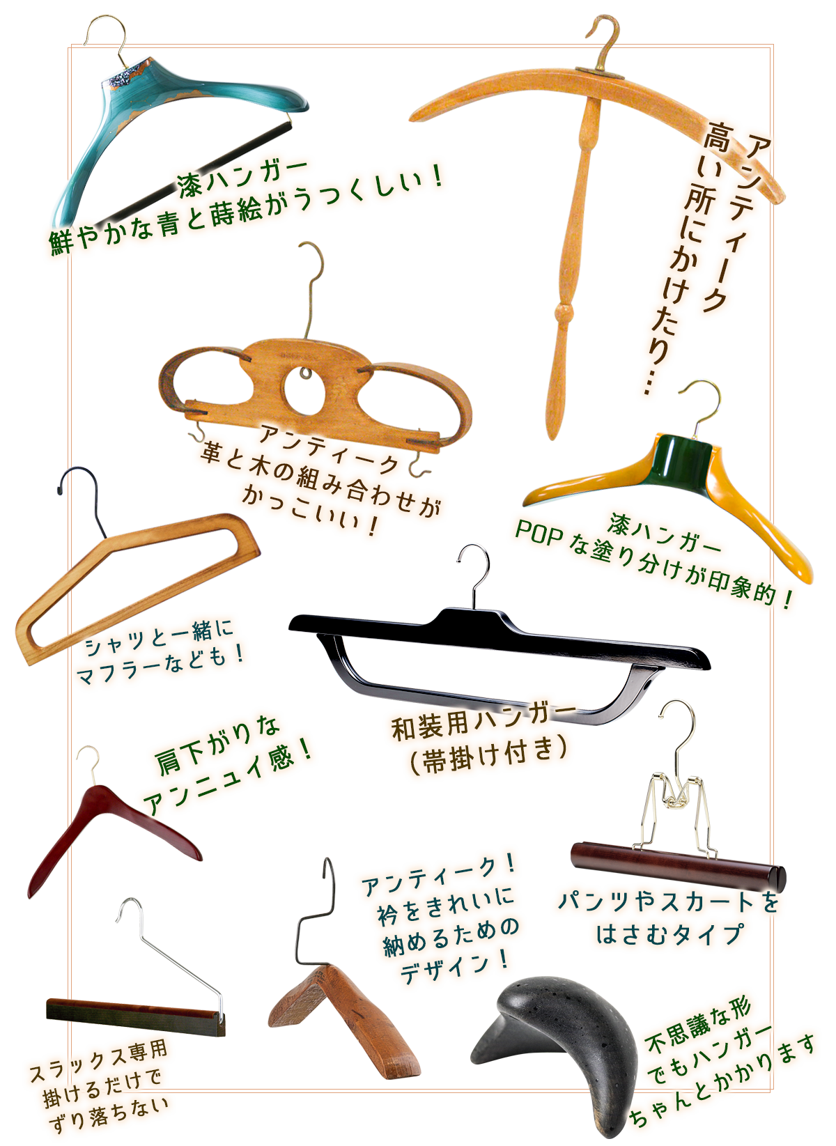 ハンガーは昔から、人々のファッションとライフスタイルに関わってきたプロダクトです。これから先も、大切なふく(服と福)をかけるモノとして生活の中に存在し続けることでしょう。