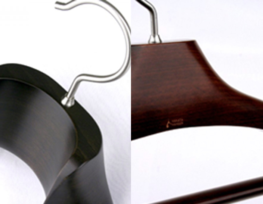 ブナ材は硬質でありながら加工のしやすさと粘り強さを合わせ持っており、曲木にも最適です。 この特性により、ブナ材のハンガーは洋服の型崩れを防ぐ曲線を活かしたフォルムを形作ることが可能なのです。緻密できめ細かく均一な木目は研磨により滑らかに仕上がり、塗装もきれいに仕上がるため洋服を傷付けることがありません。ブナ材は木製ハンガー作りに最適な材料と言えます。