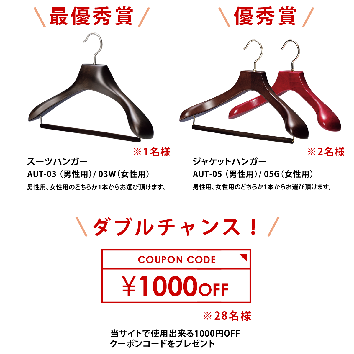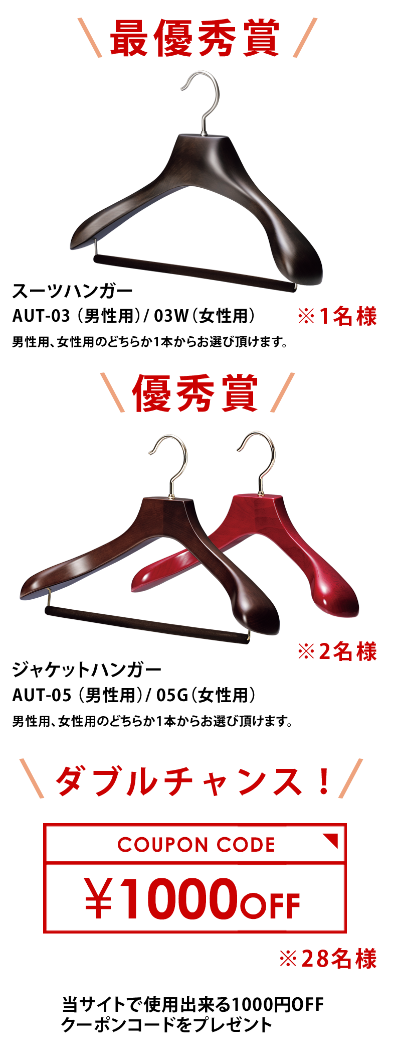 最優秀賞(1名様)スーツハンガー(AUT-03またはAUT-03Wで選択可)