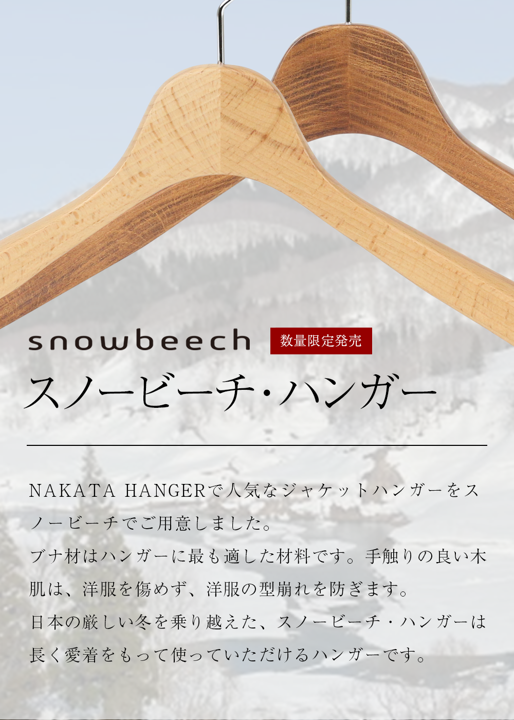 NAKATA HANGERは、国産ブランドメーカーとして国内のブナ林業のサステナビリティを考え、純国産のハンガーを商品化させたハンガーが、「スノービーチハンガー」です。