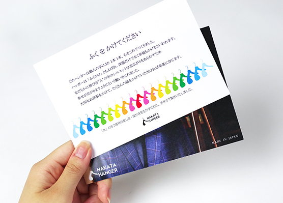 「印象に残るノベルティ」や「オリジナルの販促グッズ」としてお使いいただけます。洋服を掛ける何気ない瞬間に文字やロゴを目にしていただけるので、PR効果も抜群です。