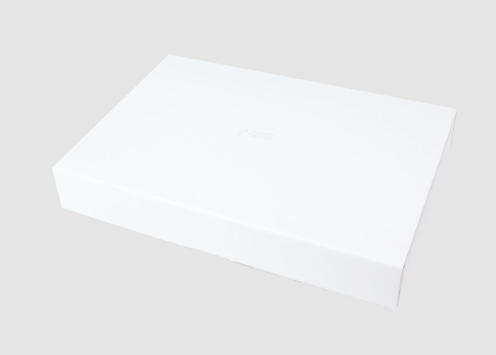 純白のオリジナル化粧箱をご用意しています。ロゴ変更やサイズについては別途お問い合わせください。